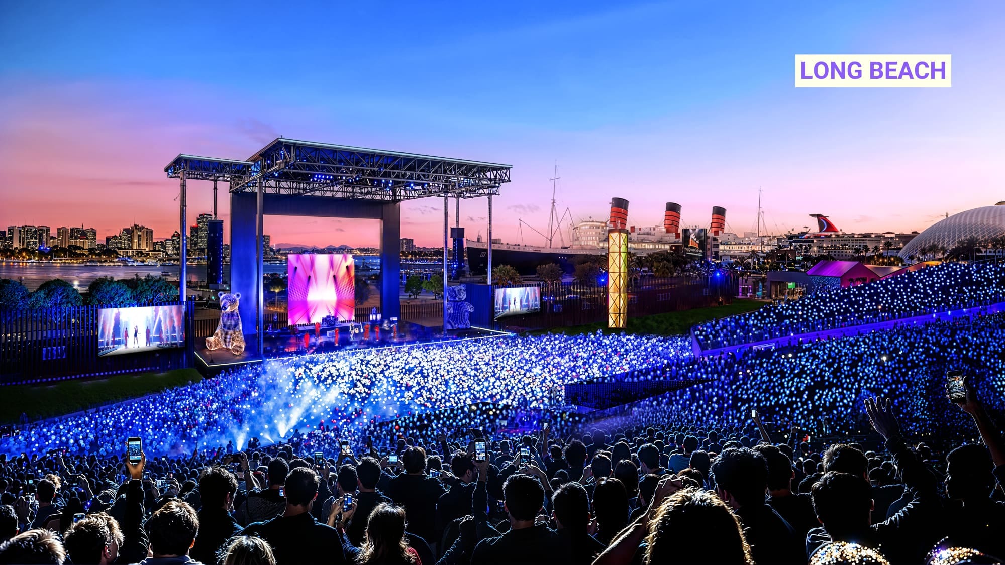 The Planning Commission approved a 12,000-capacity concert venue that'll rise on overflow parking near the Queen Mary, with ASM Global (the same group running the Convention Center) booking acts for 84 big shows and 20 smaller events annually starting Summer 2026. The 51-foot-tall prefab structures get a 10-year run with an extension option, banking on the spot's proven draw from Insomniac festivals and Dark Harbor that already pull 30,000 people for single nights.