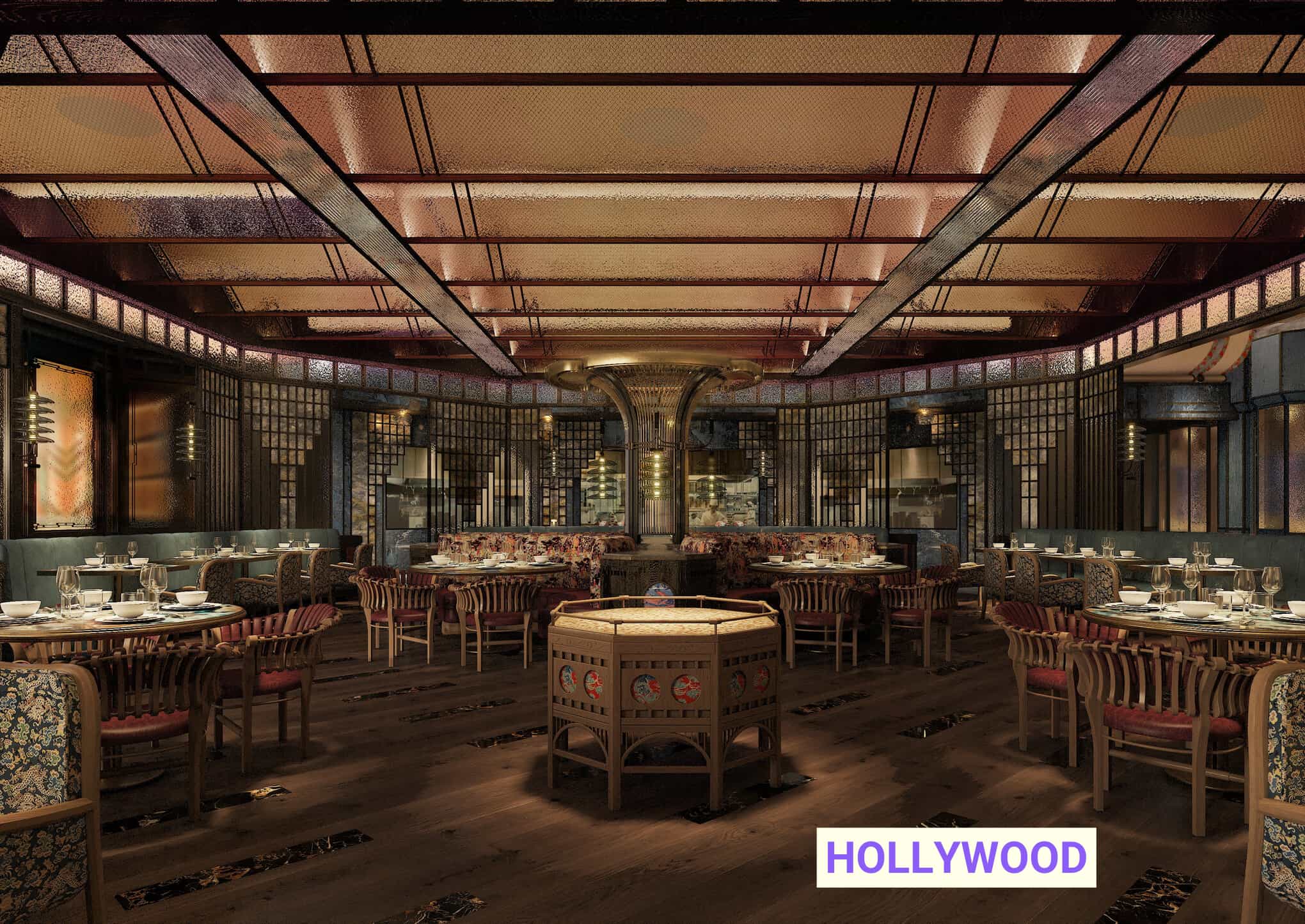 While Hollywood-specific details haven't been released, Mott 32's global aesthetic blends lofty New York industrial style with Chinese imperial elements. Joyce Wang's original Hong Kong design featured skylights, color-defined zones, metal chain details referencing Hong Kong's fishing history, and Victorian chandeliers. Each location maintains this core DNA while incorporating local influences—Las Vegas references Nevada's desert landscape, Singapore nods to Southeast Asia, Vancouver showcases Pacific Northwest materials.