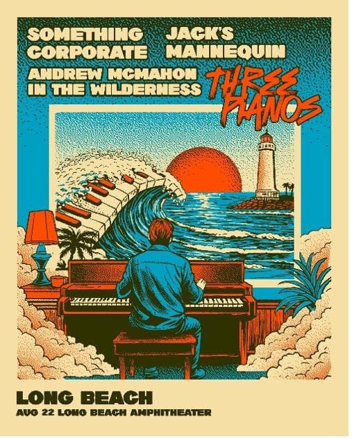 Three Pianos: An Evening with Something Corporate, Jack's Mannequin, and Andrew McMahon in the Wilderness, named after McMahon’s memoir Three Pianos, debuted in July 2025 with a sold-out show at Red Rocks Amphitheatre. The over 3-hour long concert – described by Pollstar as a “Herculean task” – has been hailed as “a night of magic” and “an unspeakably special and sacred celebration of [McMahon’s] life and career.” By performing with all three of his bands – on three of his beloved pianos, each representing their respective musical and life chapters – McMahon made Red Rocks history becoming the first artist to star as opening act, direct support, and headliner all in one night.